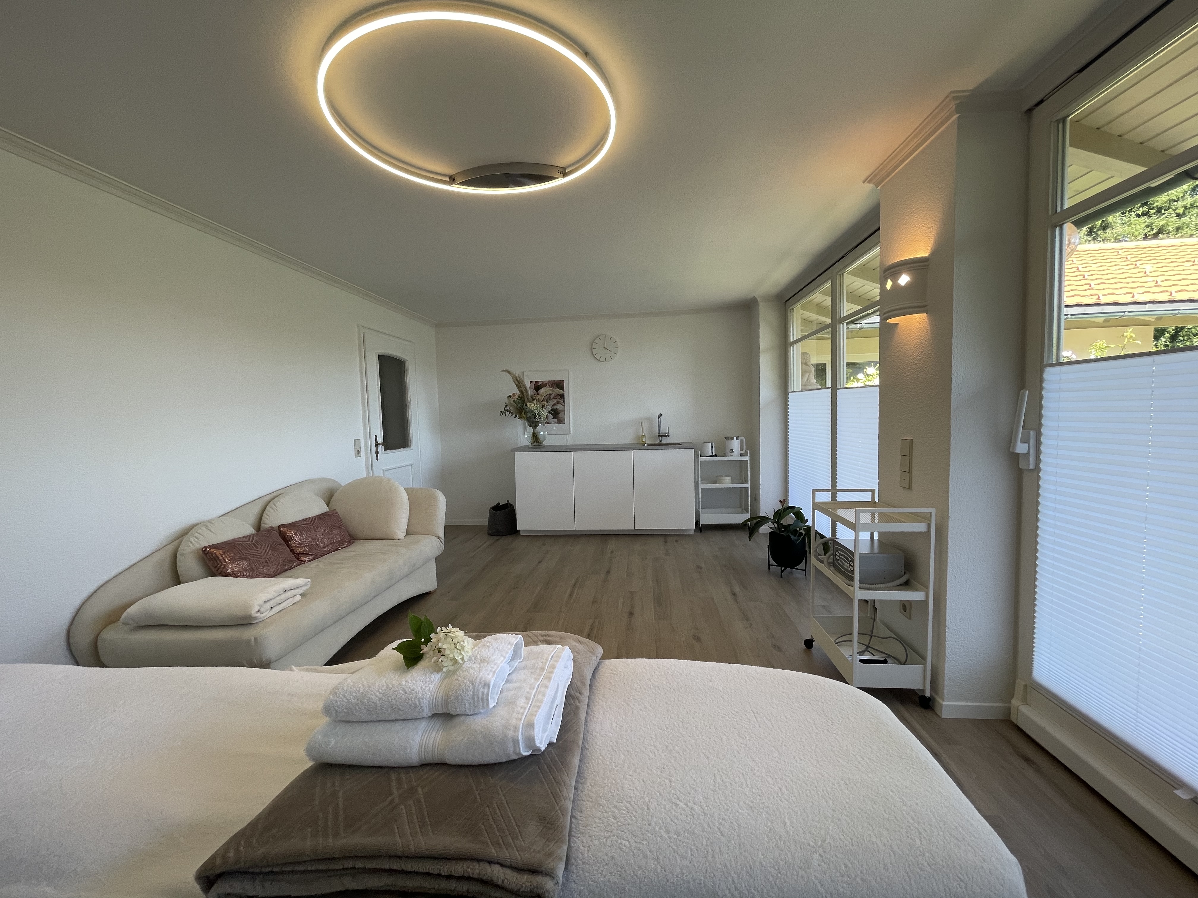 In meinen lichtdurchfluteten Räumen dürfen Sie sich mit Blick in den Rosengarten verwöhnen lassen.
